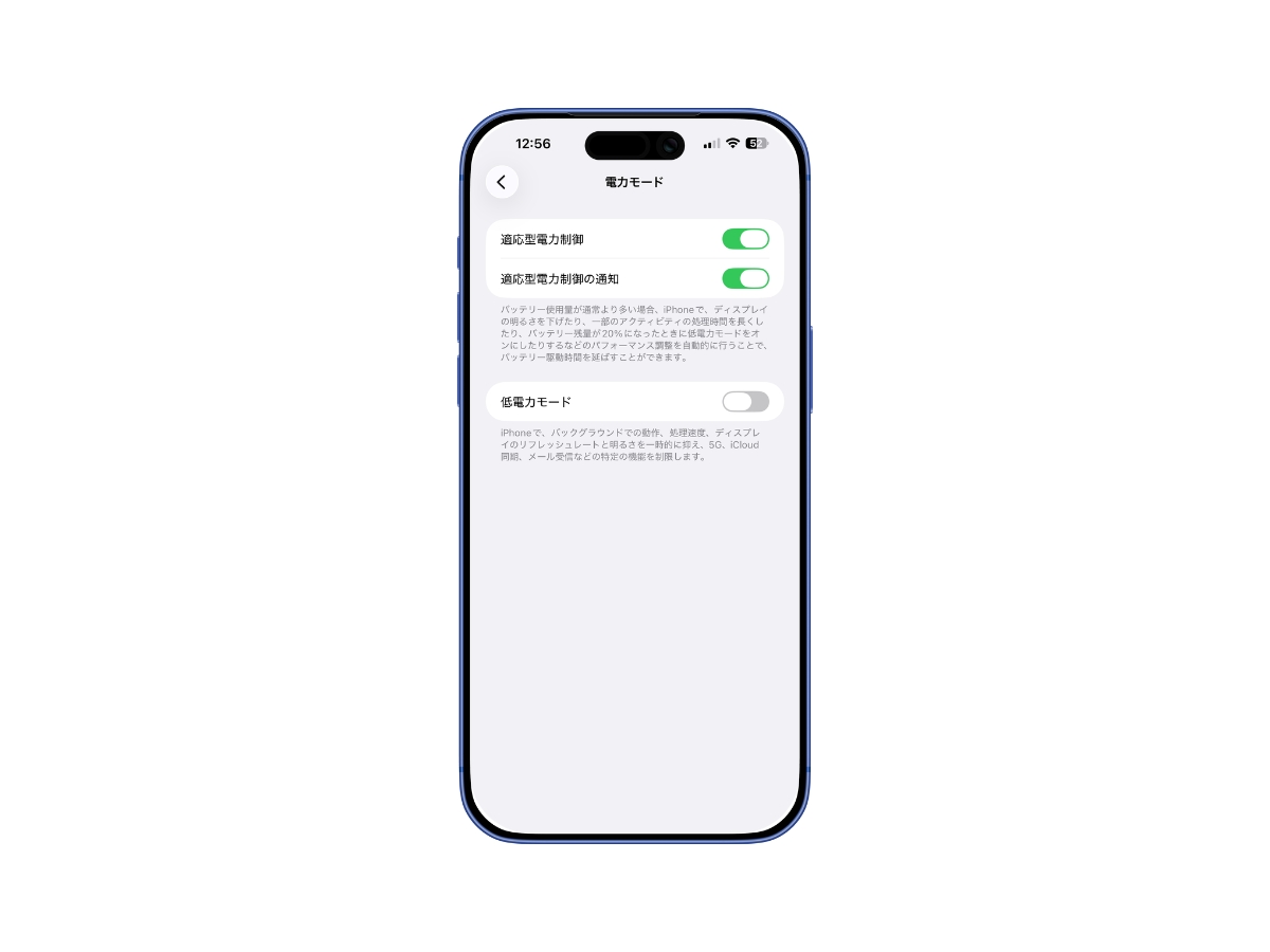 低電力モードはバッテリーを守るためのものなので、外出中や残量が少ないときだけ使うのがおすすめです。