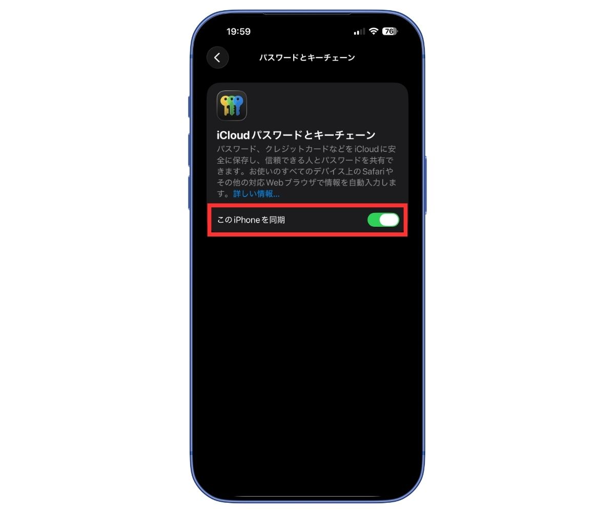 キーチェーンでパスワードを同期する方法もしすでにオンになっている場合は、